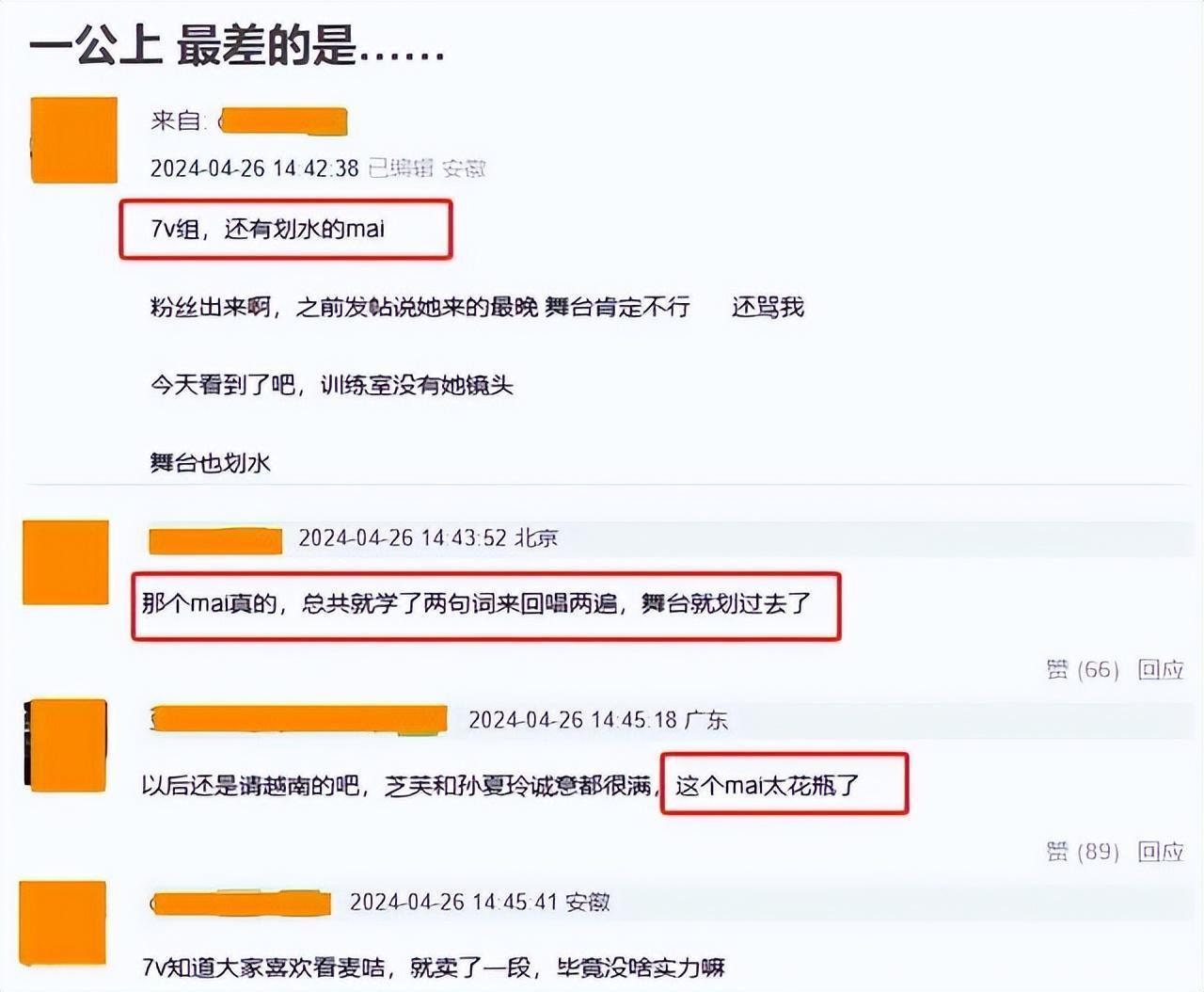 有网友暗示:Mai跳舞的技术是在划水吗?因为她跳舞的技术和姐姐们站的比拟远,似乎莫得找到定点位置,这凯旋导致团跳舞会有些不都,这首歌曲的跳舞当作并不难,况兼强度不大,是以网友们不是很了解,正因如斯,网上也出现吐槽的声息。