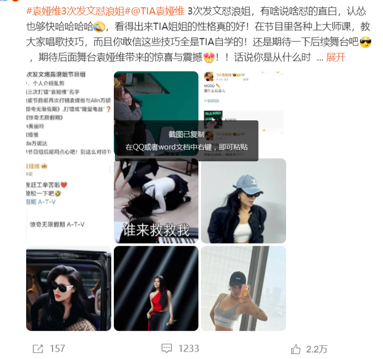 4月29日,“袁娅维3次发文怼浪姐”话题登上热搜,看到这条话题,网友们凯旋呆住了,咱们不错看到袁娅维三次发文,但她并不是怼节目组,而是进行抒发,通过袁娅维的抒发,咱们不错发现节目组将袁娅维的东说念主名、歌名答错了,比如歌名《艳羡无尽假期》被错写成《隆里电丝》。